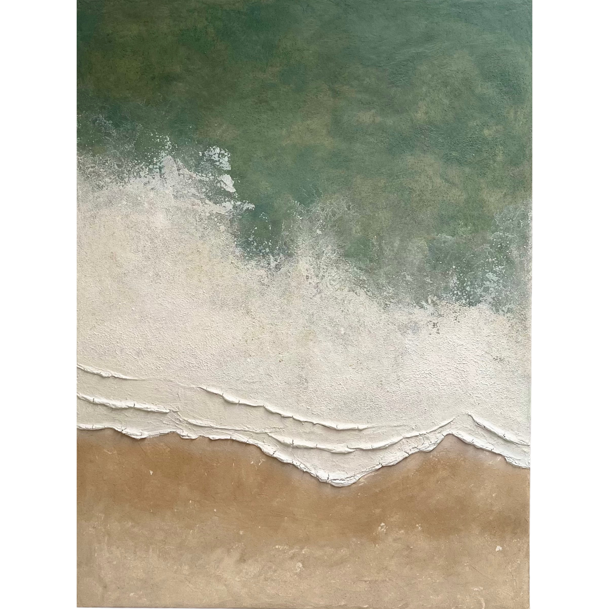 “Home Away from Home” was created as a deeply personal tribute to a place of belonging—a coastline in Northern New South Wales that holds the roots of love, memory, and connection for the couple who commissioned it. Although they have since moved away, this stretch of shoreline remains etched in their hearts. For one, it is where they grew up; for the other, it was once just a holiday destination that, over time, came to feel more like home than any other. This piece serves as a sentimental keepsake—something tangible they can carry with them, no matter where life leads. The work is composed using foraged earth pigments sourced directly from their cherished beach with textured layers and coastal tones capturing not just a landscape, but the essence of their connection to it. “Home Away from Home” is more than an artwork—it is a vessel of place, emotion, and story. A way to hold onto the feeling of home, even when it’s miles away.